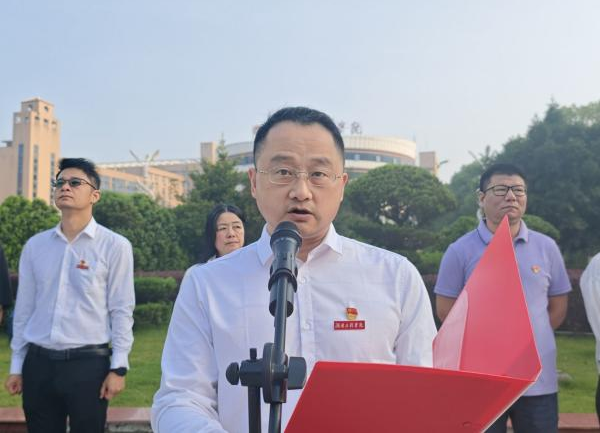 仪式最后,党委副书记林志刚发表了振奋人心的国旗下讲话。他的话语如同一盏明灯,为学子们照亮前行的道路。他激励同学们,在学习的道路上,当怀“钻坚研微探真理”的求知热忱,在实验室的方寸天地间攻坚克难,勇攀科研高峰;在日常生活中,要积极践行“与人为善、互助共进”的美好品格,让卓越精神如同春风化雨,融入点滴日常;在思想的领域里,稳立“一片丹心向家国”的信仰灯塔,以深厚的家国情怀为人生航船校准前行的航向!