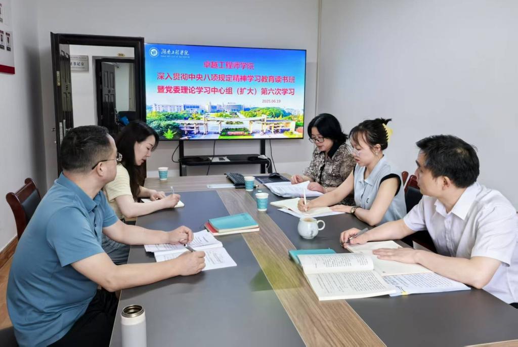 6月19日,公司党委深入贯彻中央八项规定精神学习教育读书班暨理论学习中心组在学院会议室开展第六次(扩大)集中学习,围绕深入贯彻中央八项规定精神展开专题研讨。