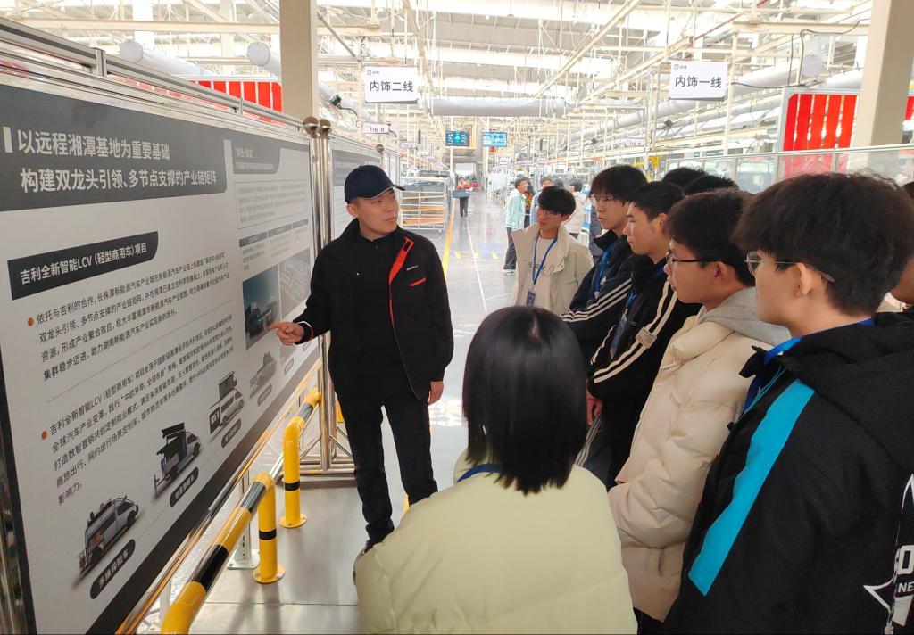 在参观过程中,公司接待人员向同学们详细介绍了公司的研发实力、生产流程和技术创新。重点介绍了公司在智能网联和新能源技术方面的最新成果,以及他们的“电动+醇氢”两大核心技术路线。此外,同学们还与公司的技术人员进行面对面的交流。技术人员耐心详细的解答他们提出关于智能网联汽车技术、新能源汽车发展趋势以及职业规划等方面的问题。这种直接的交流让员工们对智能网联汽车行业有了更深入的认识,也激发了他们投身这一行业的热情和信心。