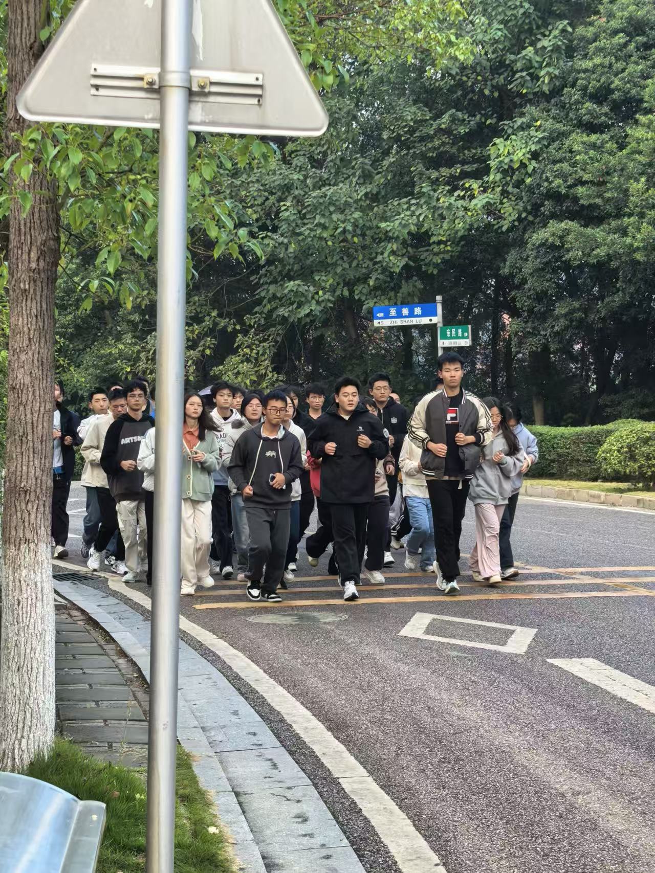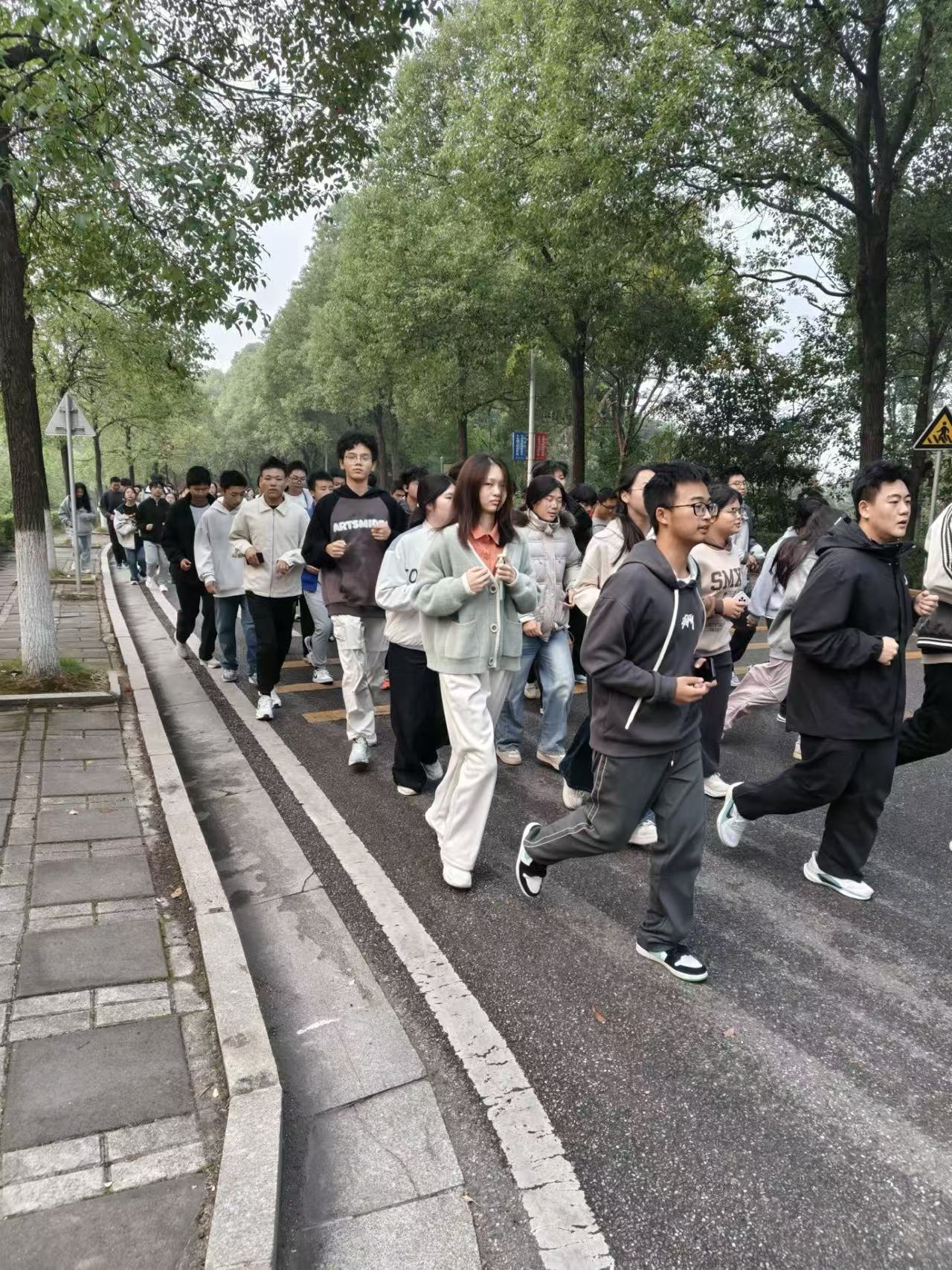 清晨7时,学子们整装待发,于新校区明德宿舍楼前集合完毕。各班班委提前规划跑步路线、明确安全事项,为活动有序开展筑牢基础。随着一声哨响,晨跑队伍整齐出发,途经林荫大道、教学楼等区域,1.5公里的路程里,处处洋溢着朝气。